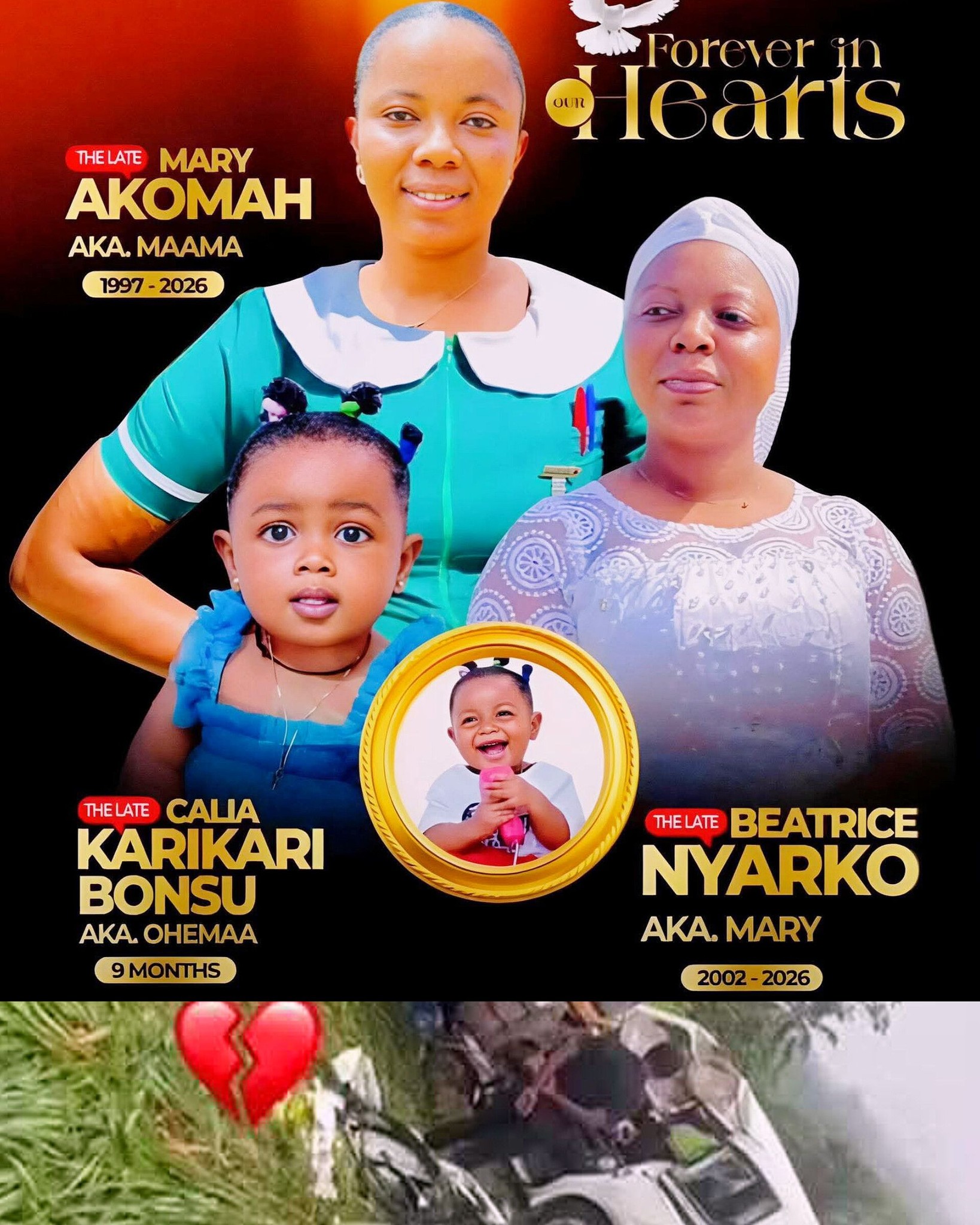 The crash claimed the lives of all three, Mary, Beatrice, and little Calia.