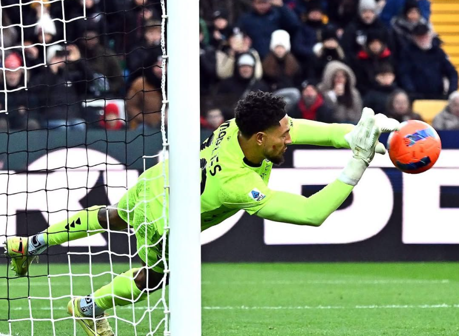 Udinese goalkeeper Maduka Okoye delivered one of the standout moments of the match as he pulled off a brilliant penalty save in the 41st minute, showcasing sharp reflexes and strong positioning.