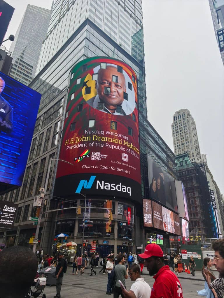 Ahead of the U.S.-Ghana Executive Business Roundtable, Ghana’s President John Dramani Mahama made a symbolic appearance at the NASDAQ Stock Exchange in New York.