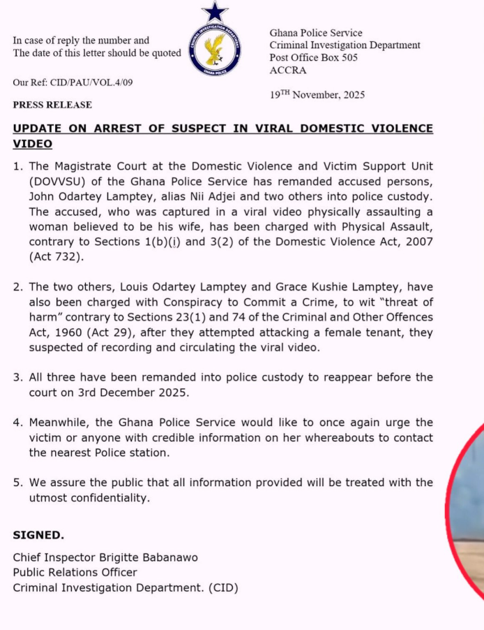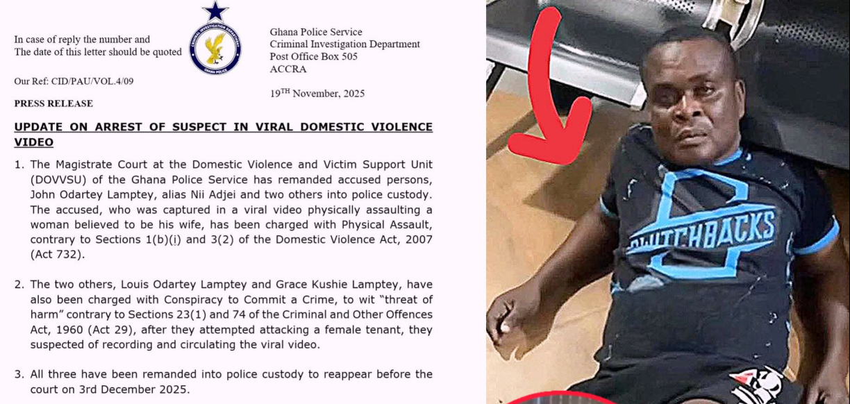 John Odartey Lamptey, the man seen in a viral video physically assaulting his wife, has been remanded into police custody.