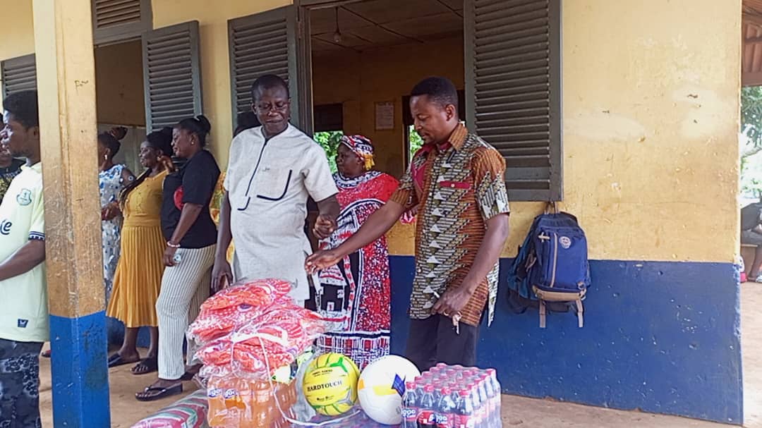 The group presented assorted items, including jerseys, footballs, volleyballs, sanitary pads, soft drinks, and bottled water, worth over GHS 5,000, to the school in preparation for their school league.