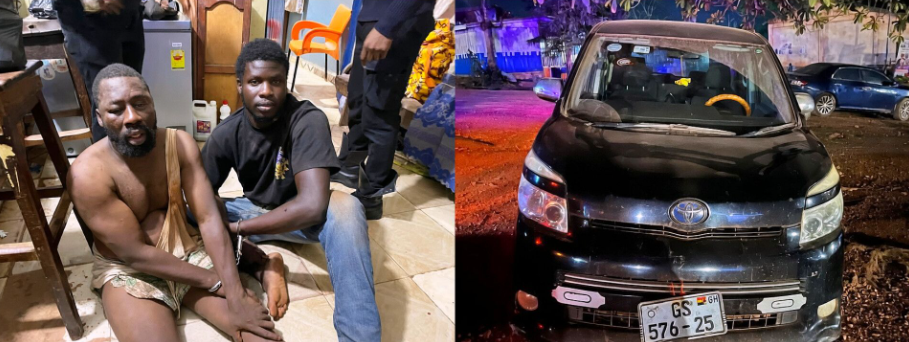 Following a swift response, police pursued the suspects and intercepted their vehicle at the Sumpre checkpoint.