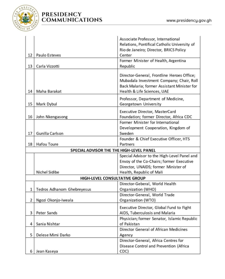 The High-Level Consultative Group includes WHO Director General Tedros Adhanom Ghebreyesus, WTO Director General Ngozi Okonjo-Iweala, and other prominent leaders from global health institutions.