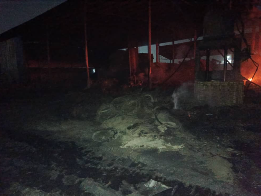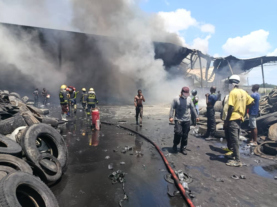 The fire, which involved industrial ovens used for extracting pyrolysis oil from tyres, broke out around 11:04 a.m. A swift response from GNFS saw four fire tenders from the Gbetsile, Devtraco, Tema Metro, and Motorway Fire Stations arriving at the scene to prevent the blaze from spreading.