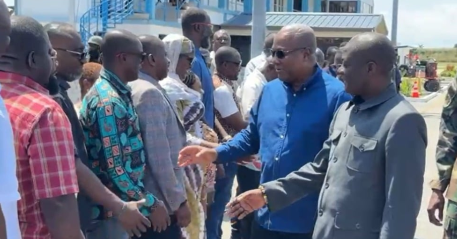 President John Dramani Mahama began his one-working-day visit to the Western Region in the Ahanta West municipality, where he inspected the stalled 25 percent complete regional hospital project at Apemenyim.