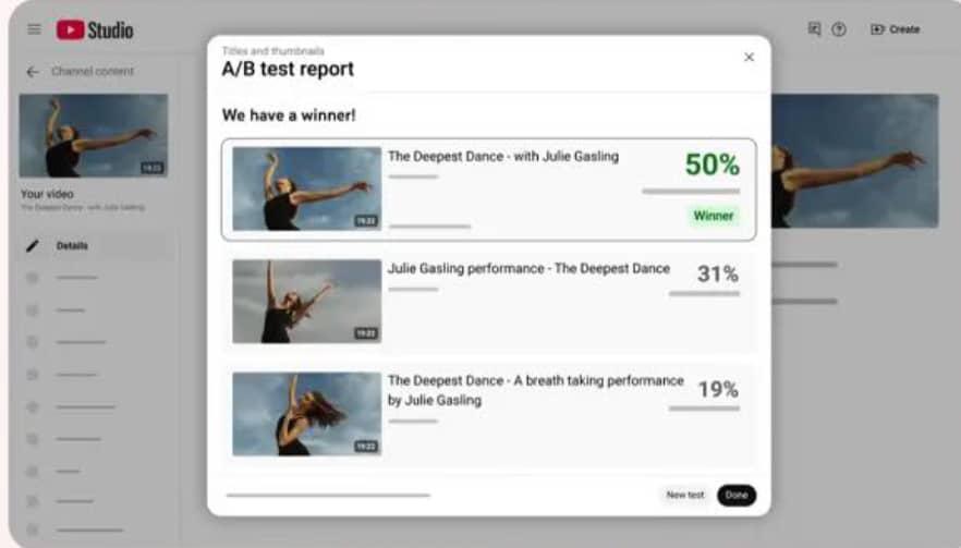 YouTube now offers title and thumbnail A/B testing to all creators with Advanced Features access.